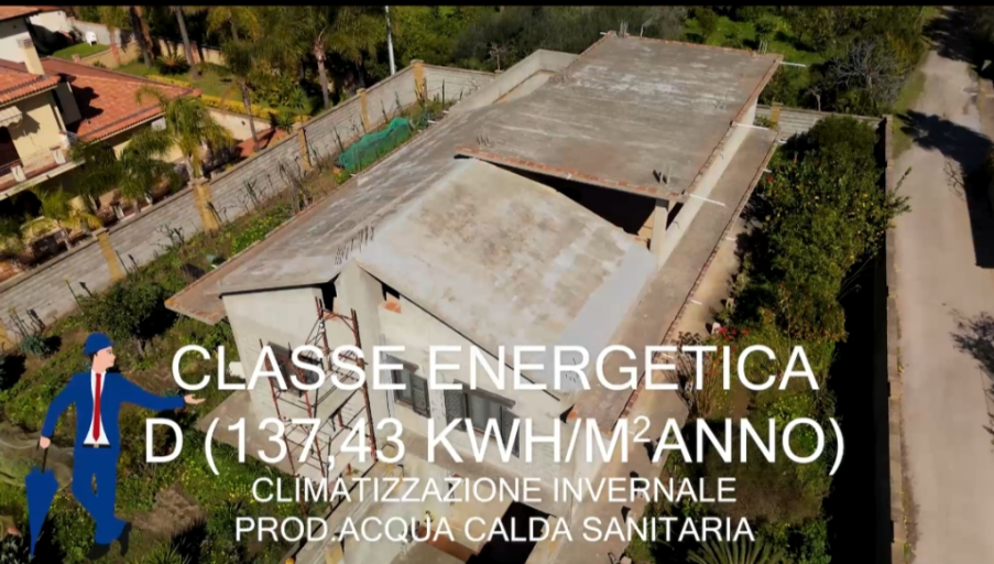 Vende a Capo d'Orlando, in via Trassari, grande villa, composta da piano S/1 mq 197 allo stato rustico, -P T° in parte rifinito ed abitabile mq 197 + 6 mq di balconi - P 1° allo stato rustico, con una superficie coperta 163 mq di cui 6O mq con solai piano ed altezza 2,50, 103 con altezza variabile da un minimo 0,60 ml ad un massimo di ml 2,60, oltre 43 mq di balconi e 50 di terrazza. Il lotto di terreno tutto recintato è di circa 1000 mq la classe energetica è "D" con 137,43 kwh/mq anno. possibilità di frazionamento in due unità immobiliari con annesso terreno.